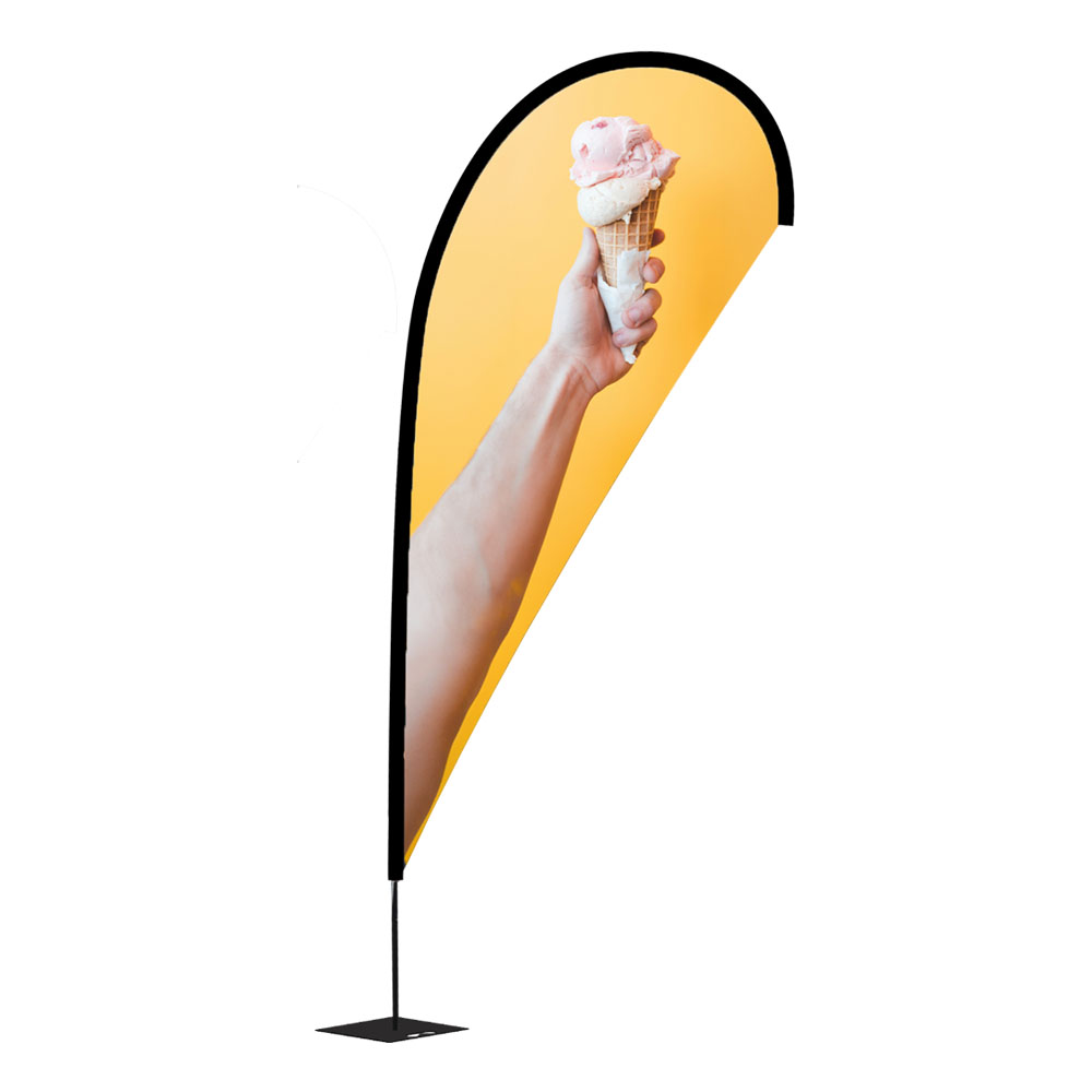Die Beachflag Drop Extra Small ist die ideale Lösung für platzsparende und dennoch auffällige Werbung. Perfekt für Messen, Events oder den Point of Sale, zieht sie mit ihrer geschwungenen Tropfenform die Blicke auf sich. Dank des hochwertigen Sublimationsdrucks kommt Ihre Werbebotschaft brillant zur Geltung. Die leichte und stabile Konstruktion ermöglicht einen schnellen Auf- und Abbau sowie einen einfachen Transport.